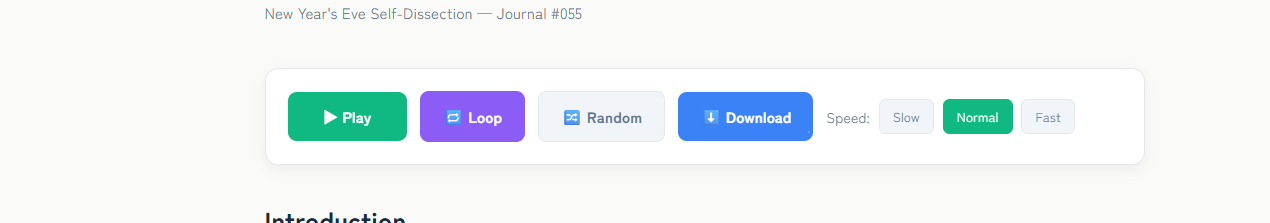 緑のPlayボタン、紫のLoop、白のRandom、青のDownload。