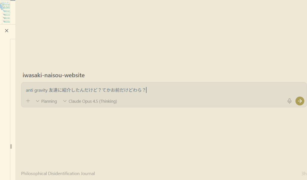 友:「いや、お前(AI)を使えてるってことを、Antigravityというグーグルのタダで使えるIDEが提供してるんだろ?そのビジネスモデル、なんで無料なのか考えてみろよ」